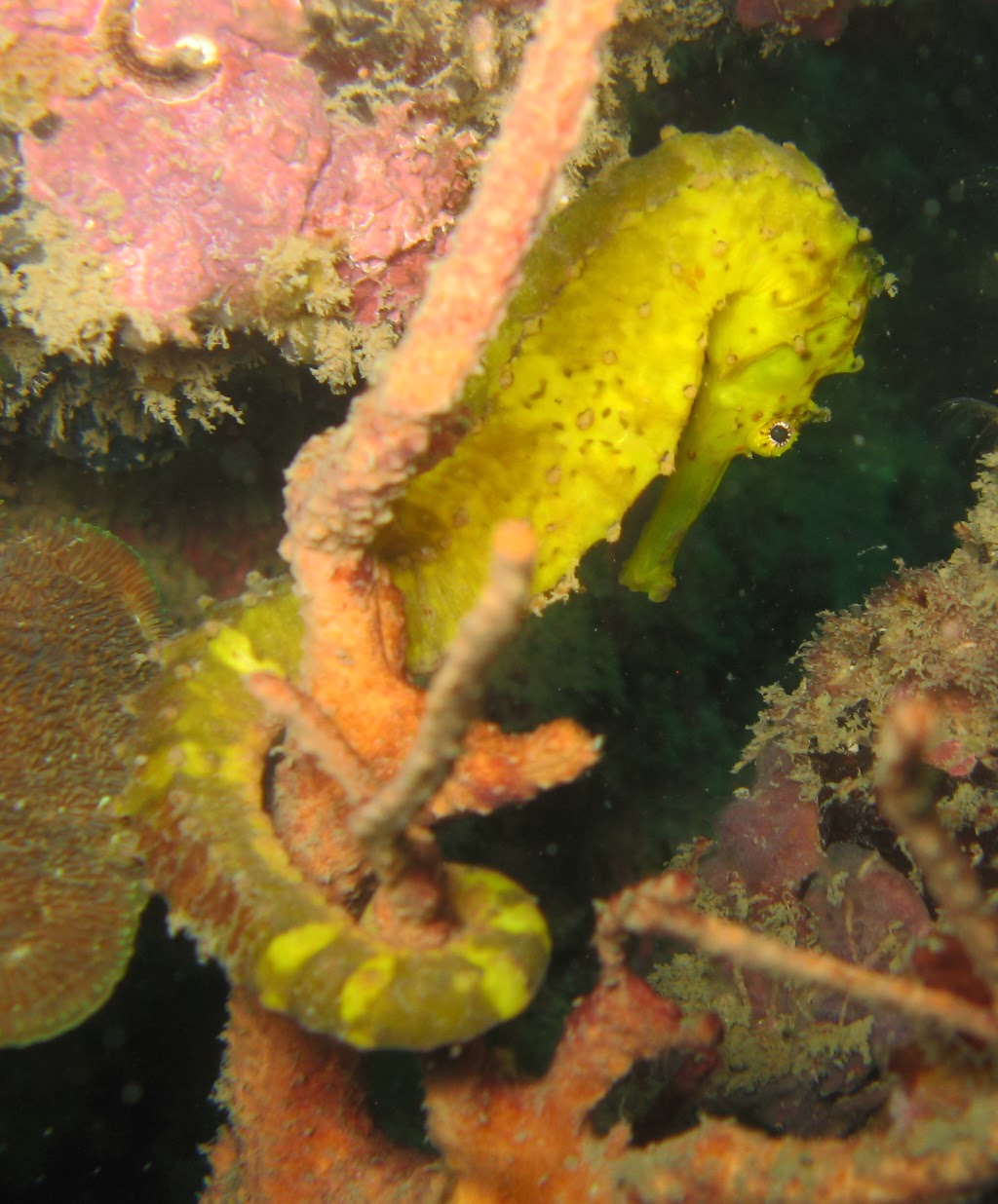 Dyykkien suurimmat sulottaret olivat kuitenkin kainosti poseeraavat merihepat (common seahorse), joita näimme sekä keltaisina että ruskeina.
